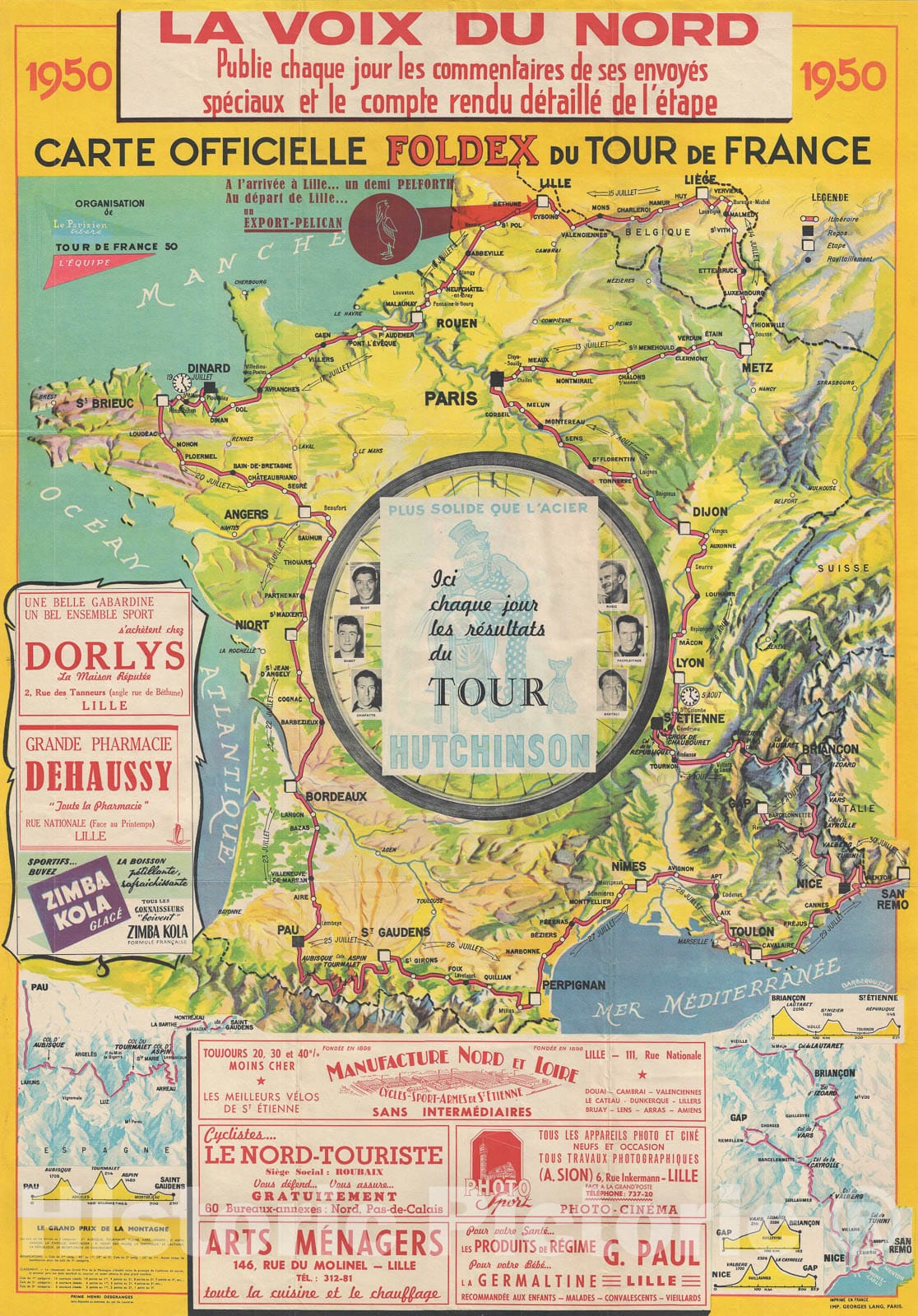 Official Route of The Tour de France Cycling Race, Foldex, 1950