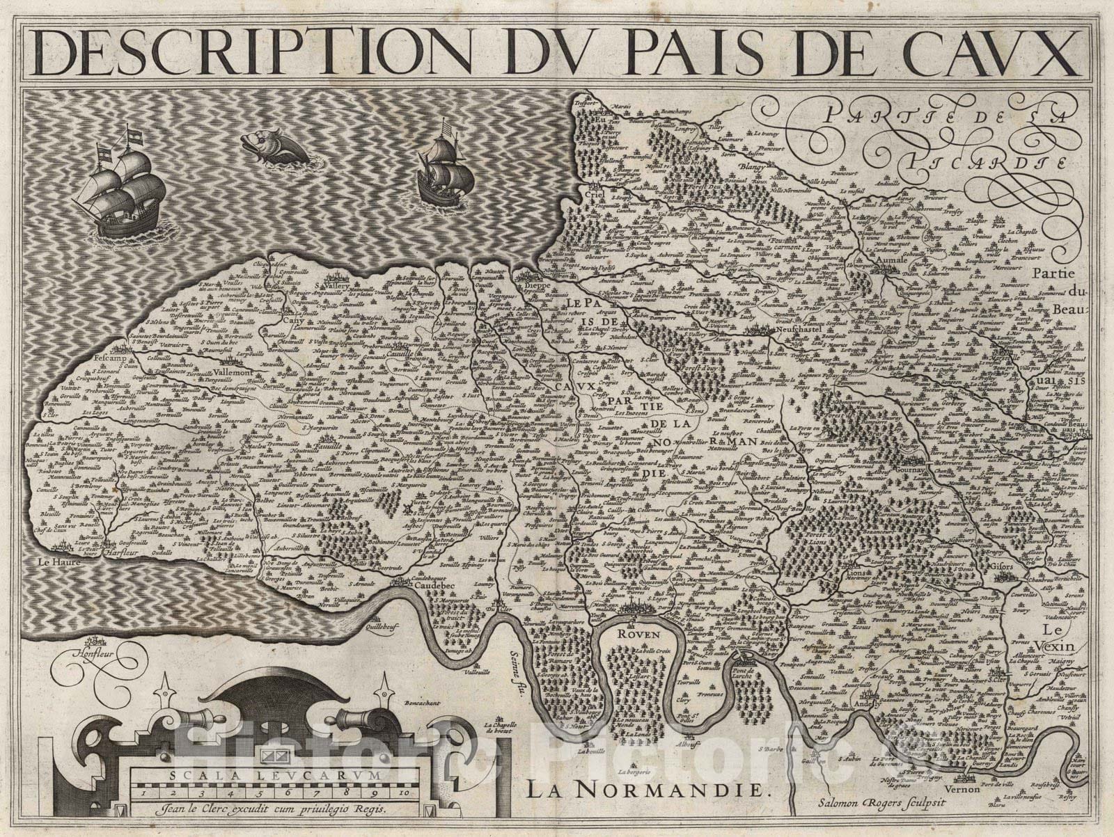 Picardy , France 1632 Description du Pais de Caux. , Vintage Wall Art