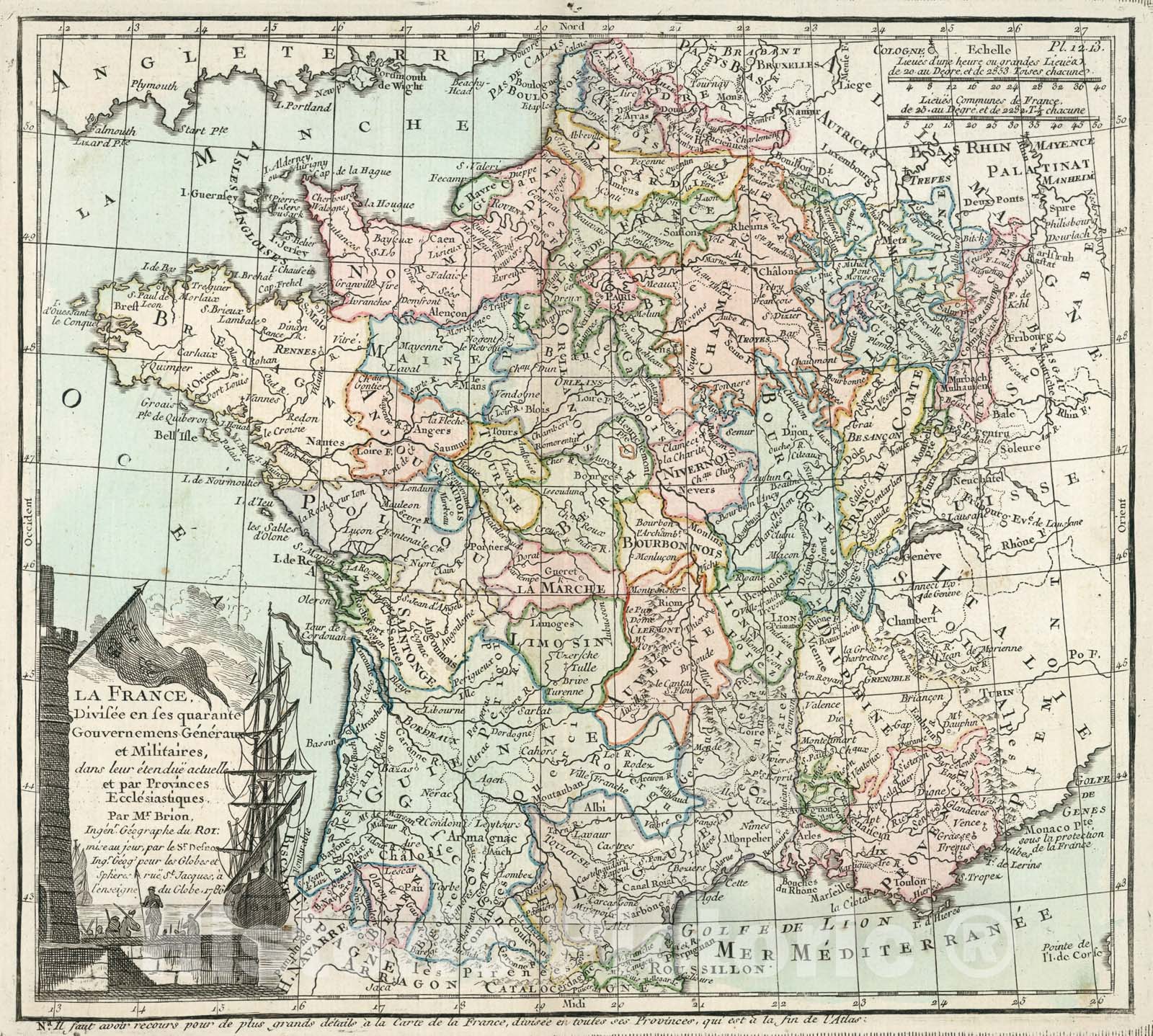 Historic Map : Pl. 12.13. La France, Divisee en ses quarante Gouvernemens Generaux et Militaires, 1786, v1, Vintage Wall Decor