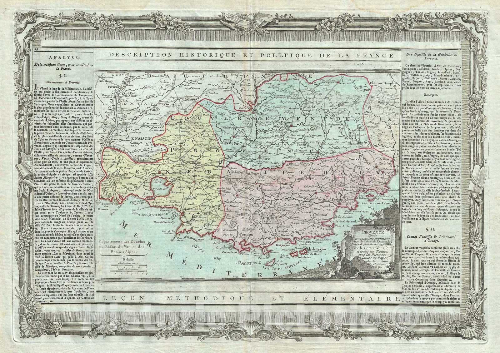 • .Historic Map : The Provence Region of France "French Riviera", Desnos, 1786, Vintage Wall Art