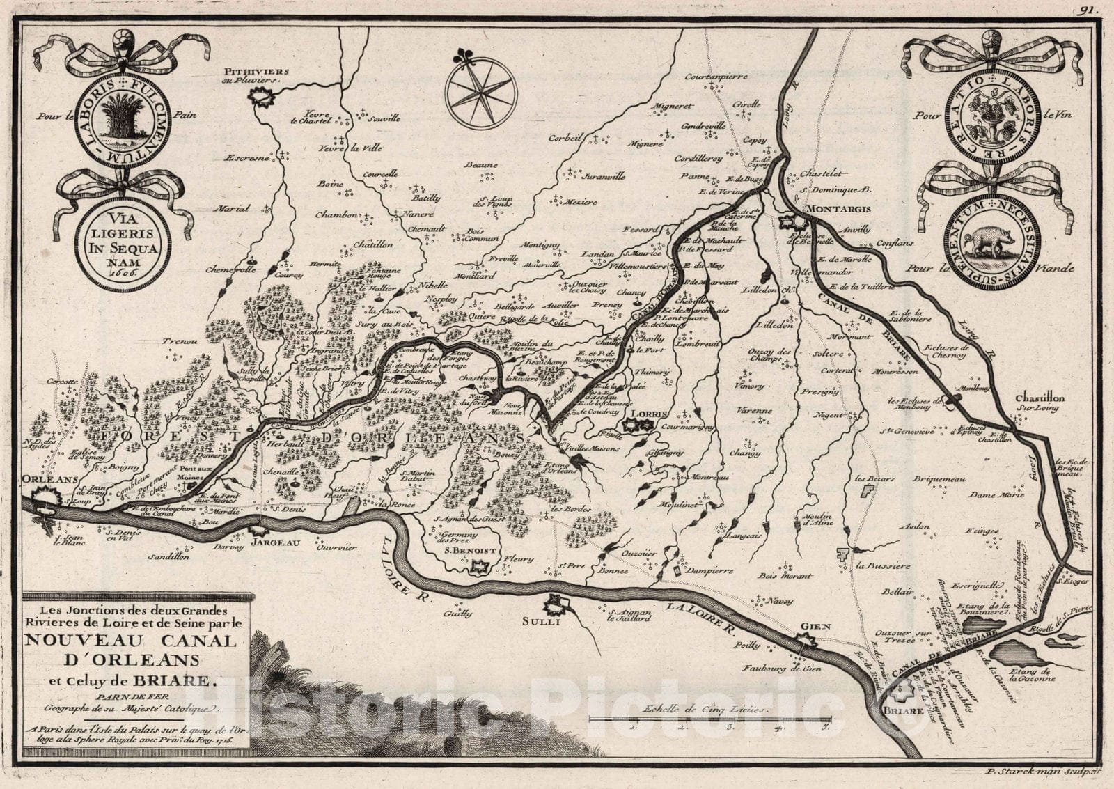 Historic Map : World Atlas Map, Noveau Canal d'Orleans et Celuy de Briare, France. 1716 - Vintage Wall Art