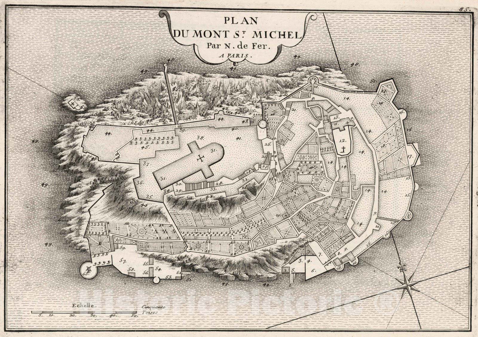 Historic Map : World Atlas Map, Plan du Mont St. Michel, France. 1705 - Vintage Wall Art