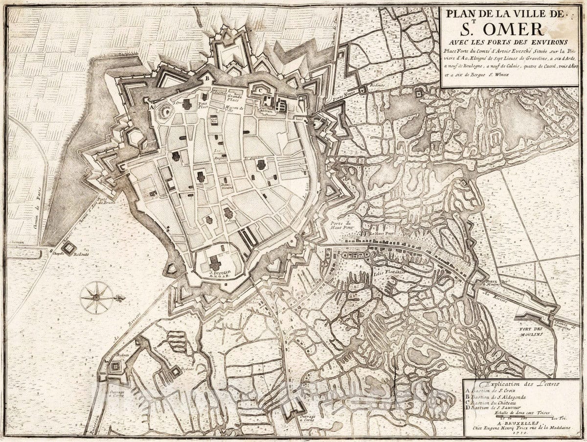Historic Wall Map : Saint Omer , France, 1710 73. Plan de la Ville de St. Omer avec les Forts des Environs, France. 1710. , Vintage Wall Art