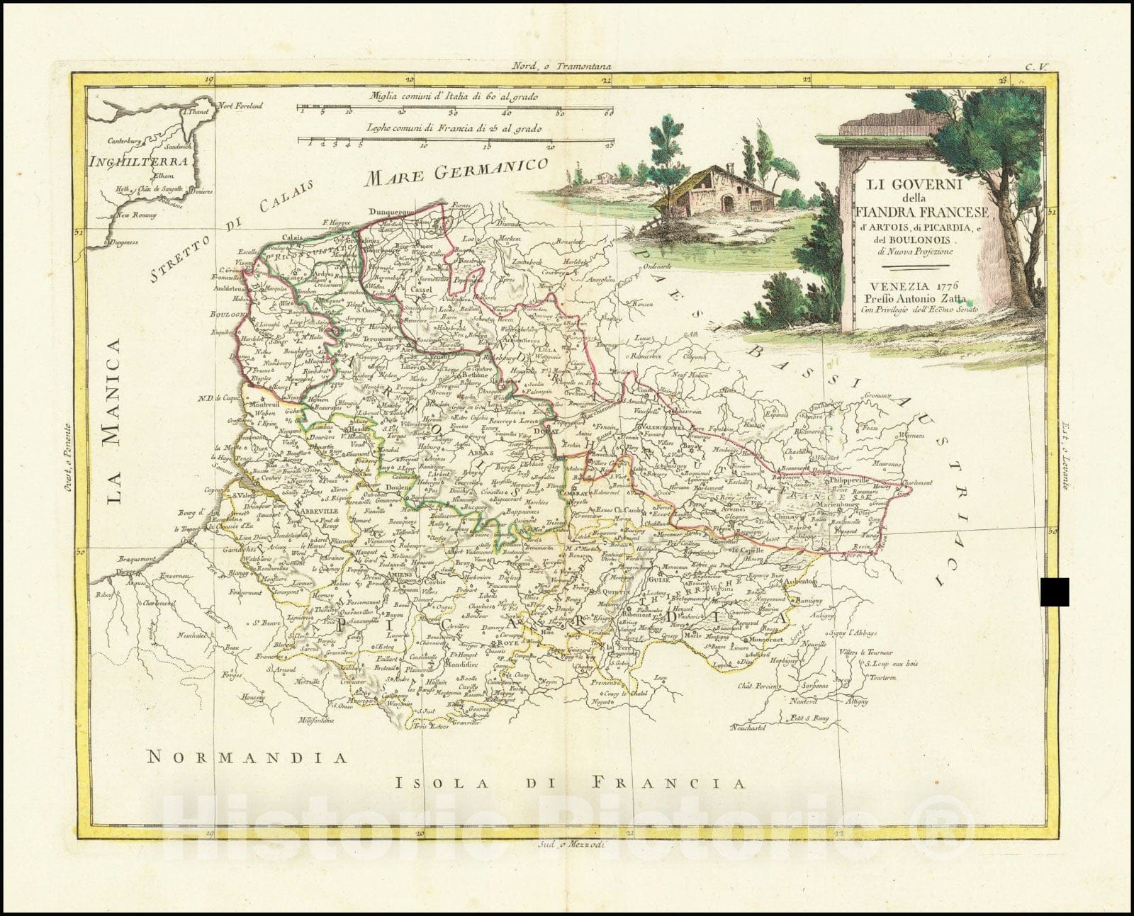 Historic Map : Li Governi della Fiandra Francese, d'Artois, di Picardia, e del Bulonois di Nuova Projezione, 1776, 1776, Vintage Wall Art