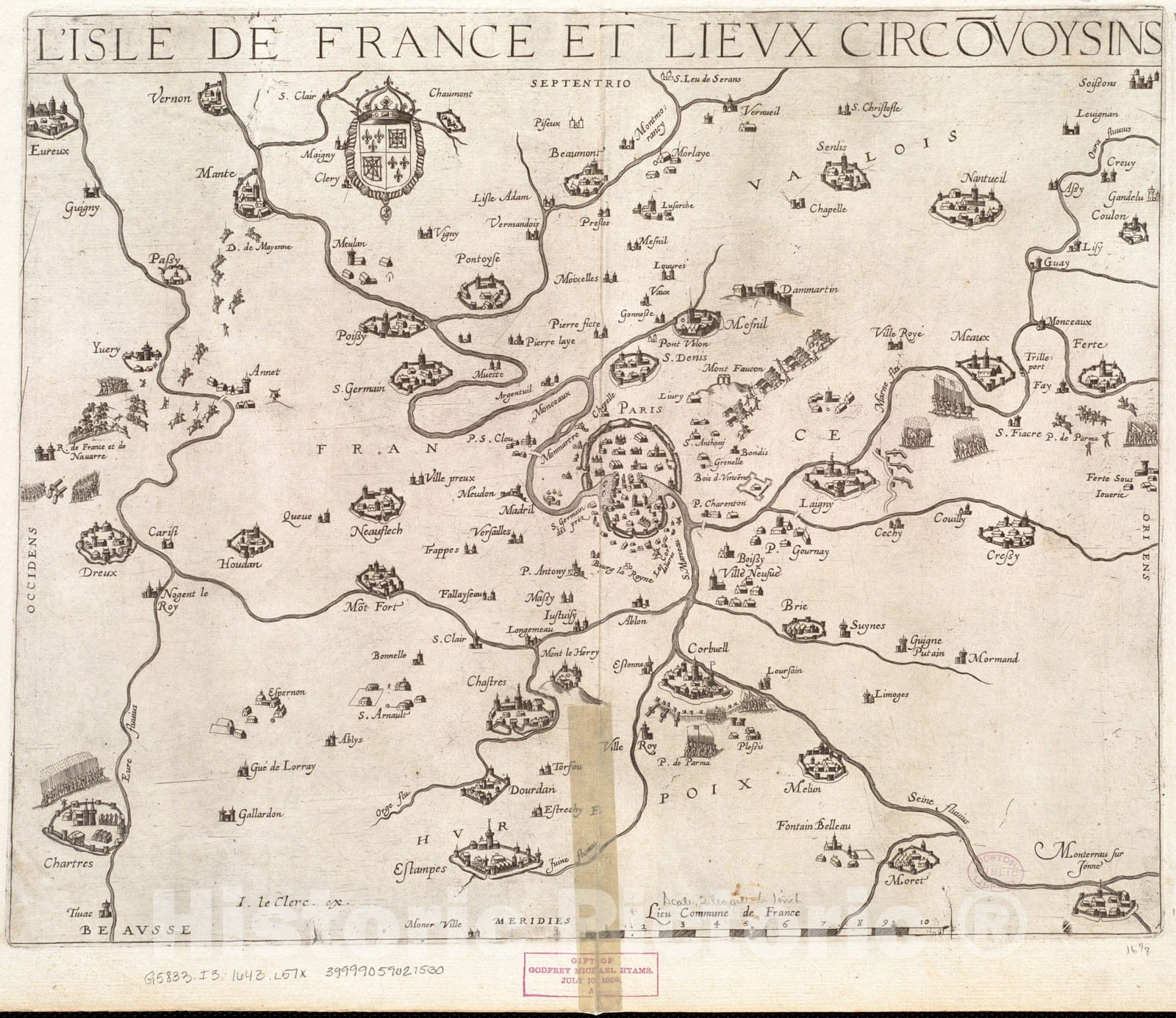 Historical Map, 1643 L'Isle de France et lieux circoIˆvoysins, Vintage Wall Art