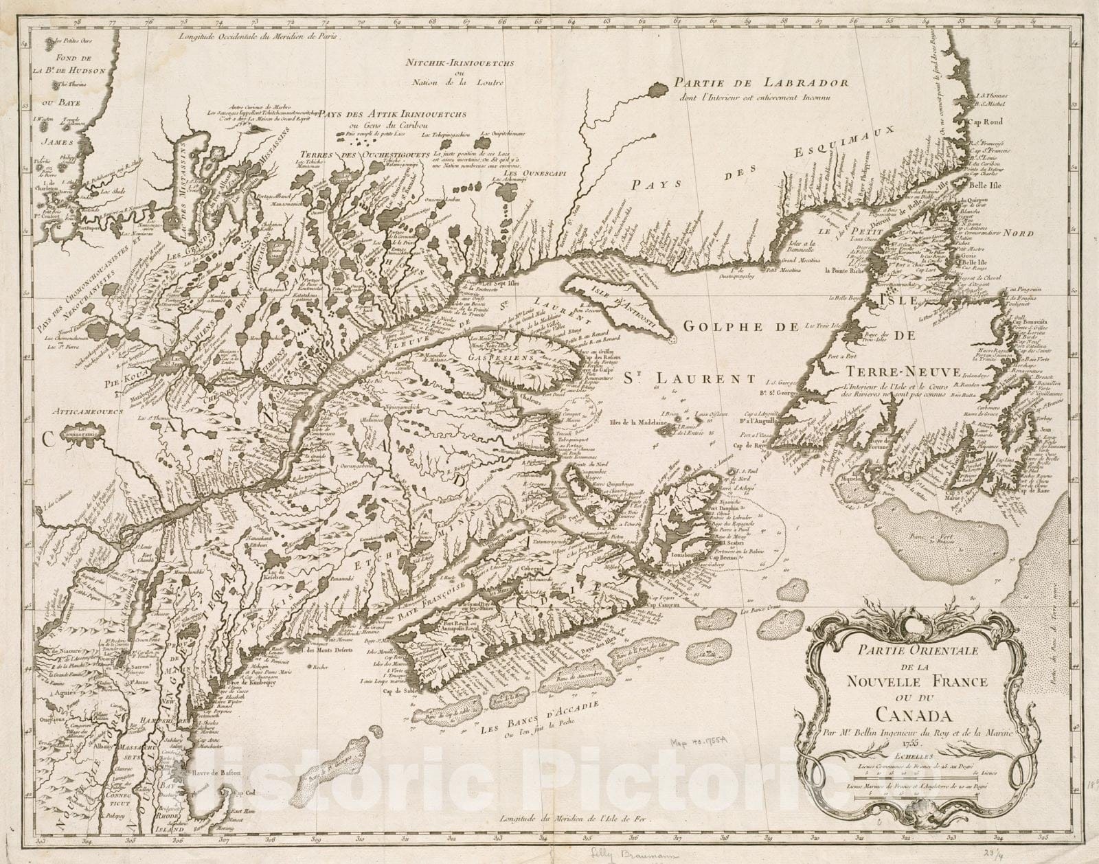 Historical Map, 1755 Partie orientale de la Nouvelle France ou du Canada, Vintage Wall Art