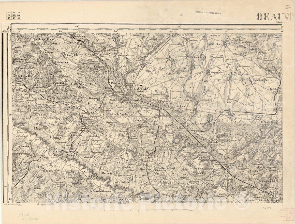 Map : Beauvais, France , [Topographic maps of France], Antique Vintage Reproduction