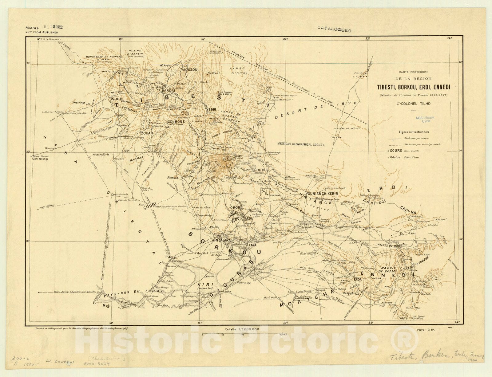 Carte Provisoire de la region Tibesti, Borkou, Erdi and Ennedi (Mission de l'Institute de France 1912-1917) / Lt. Colonel Tilho ; dessine et heliograve par le Service Geographique de L'Armee