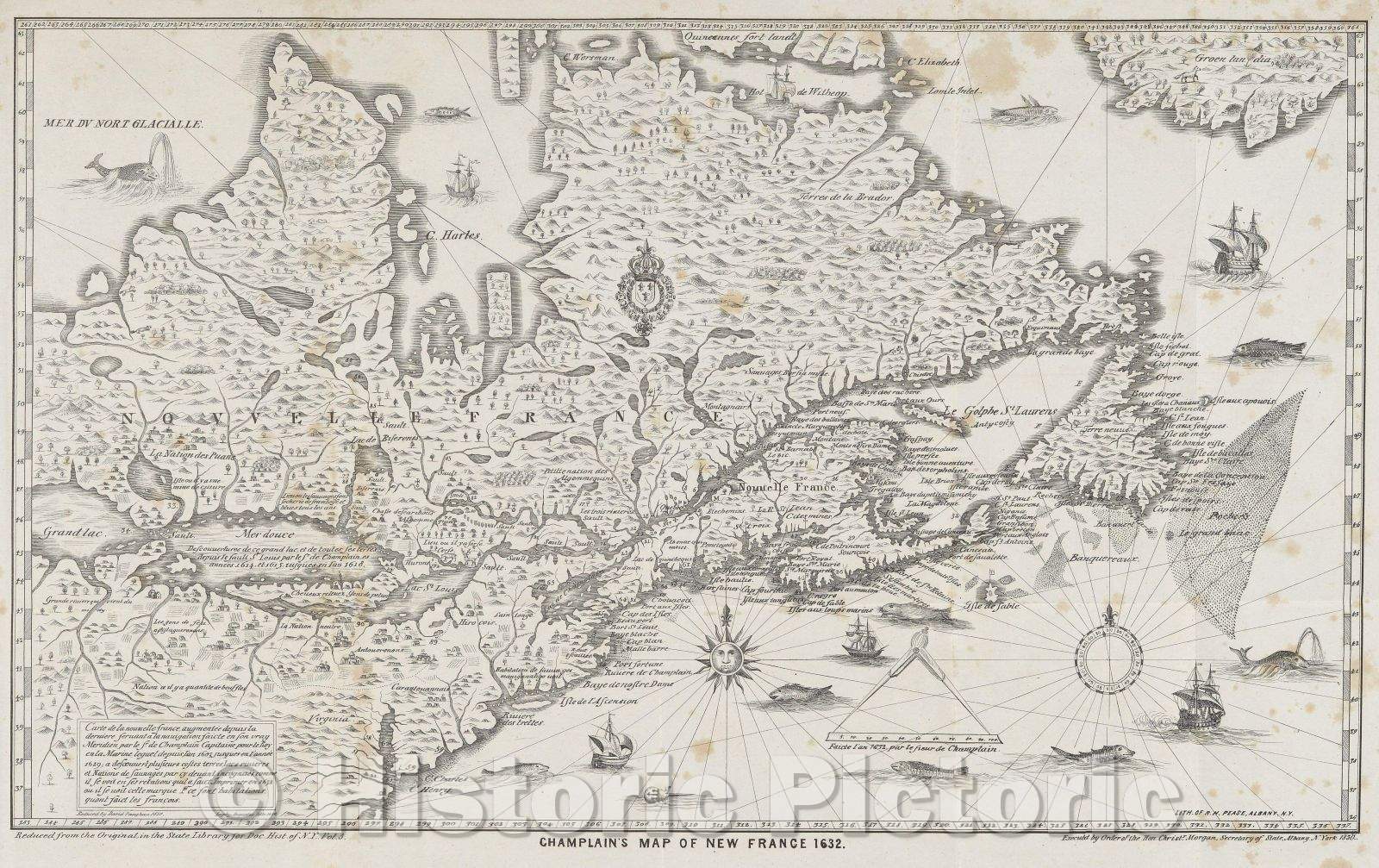 Historic Map : Champlain's Map of New France 1632, 1850 , Vintage Wall Art