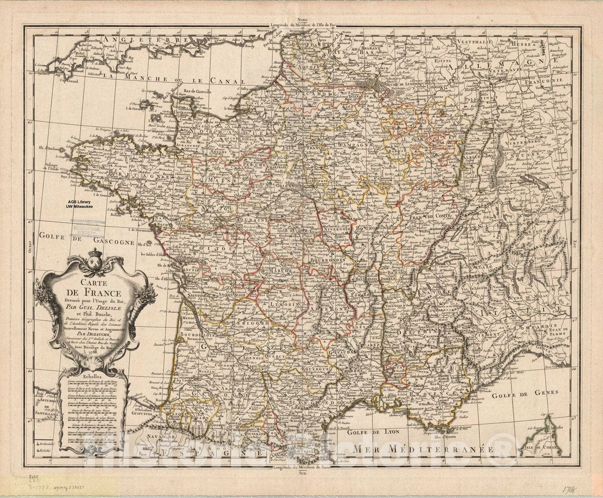 Map : France 1788, Carte de France : dressee pour l'instruction , Antique Vintage Reproduction