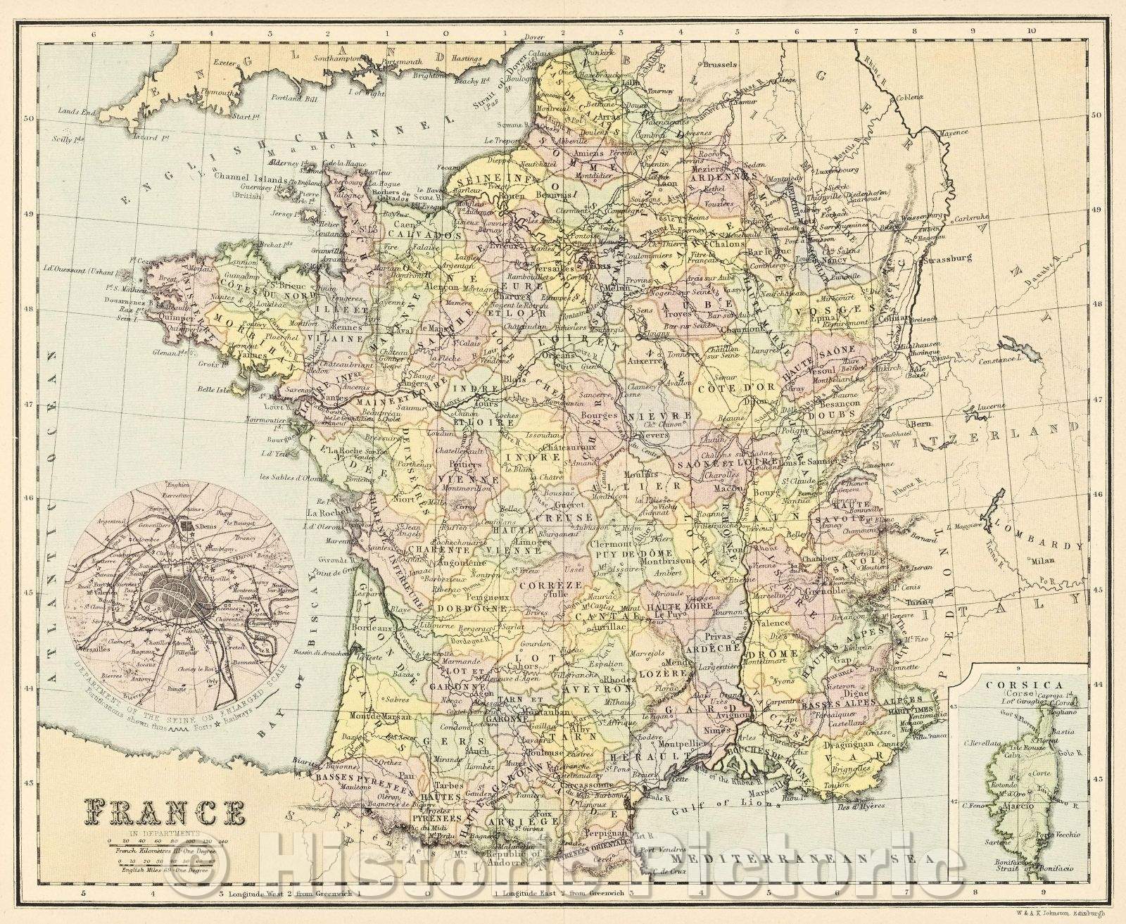 Historic Map : France, c. 1882 , Vintage Wall Art