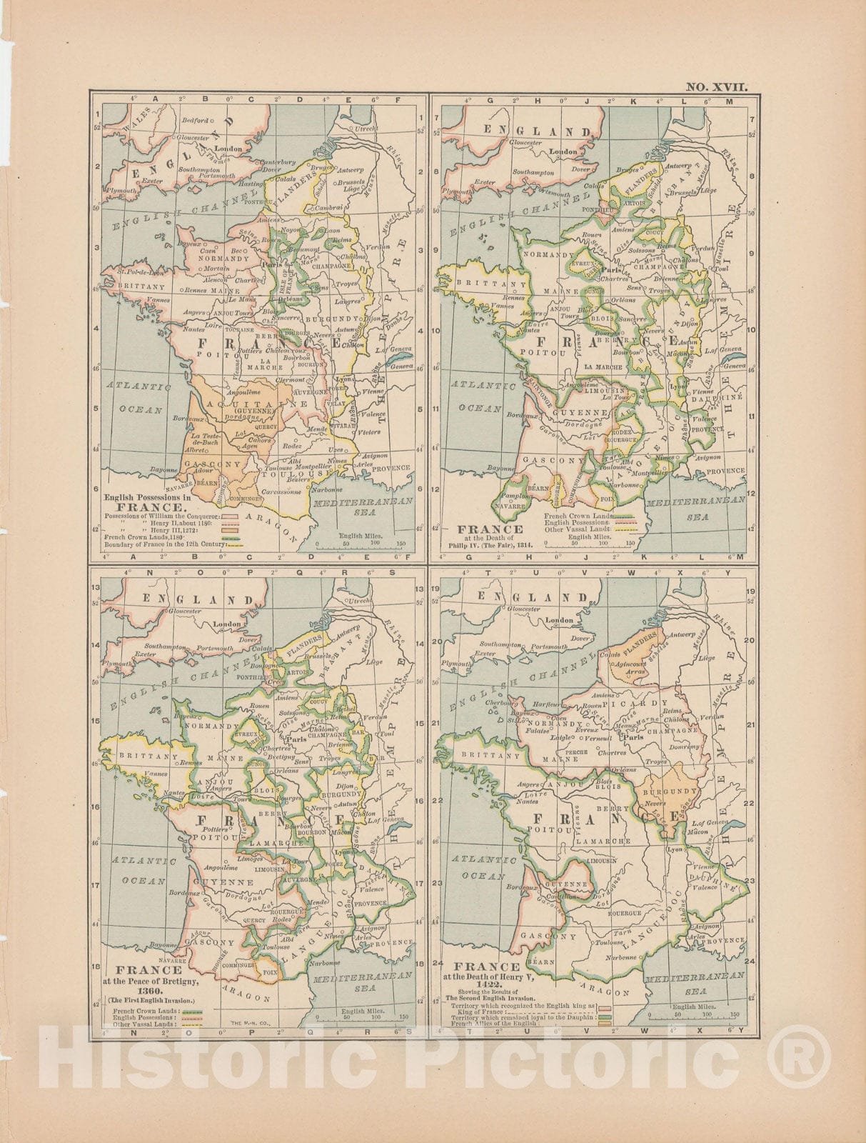 Historic Map : France 1897 , The Century Atlas World , Vintage Wall Art
