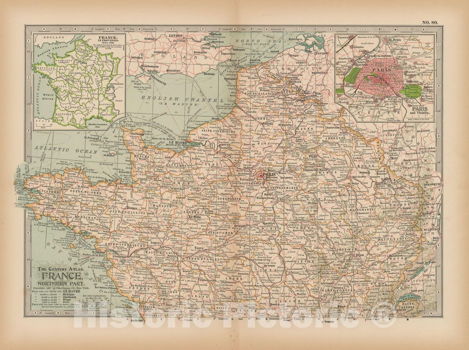 Historic Map : France 1897 , The Century Atlas World , v3, Vintage Wall Art