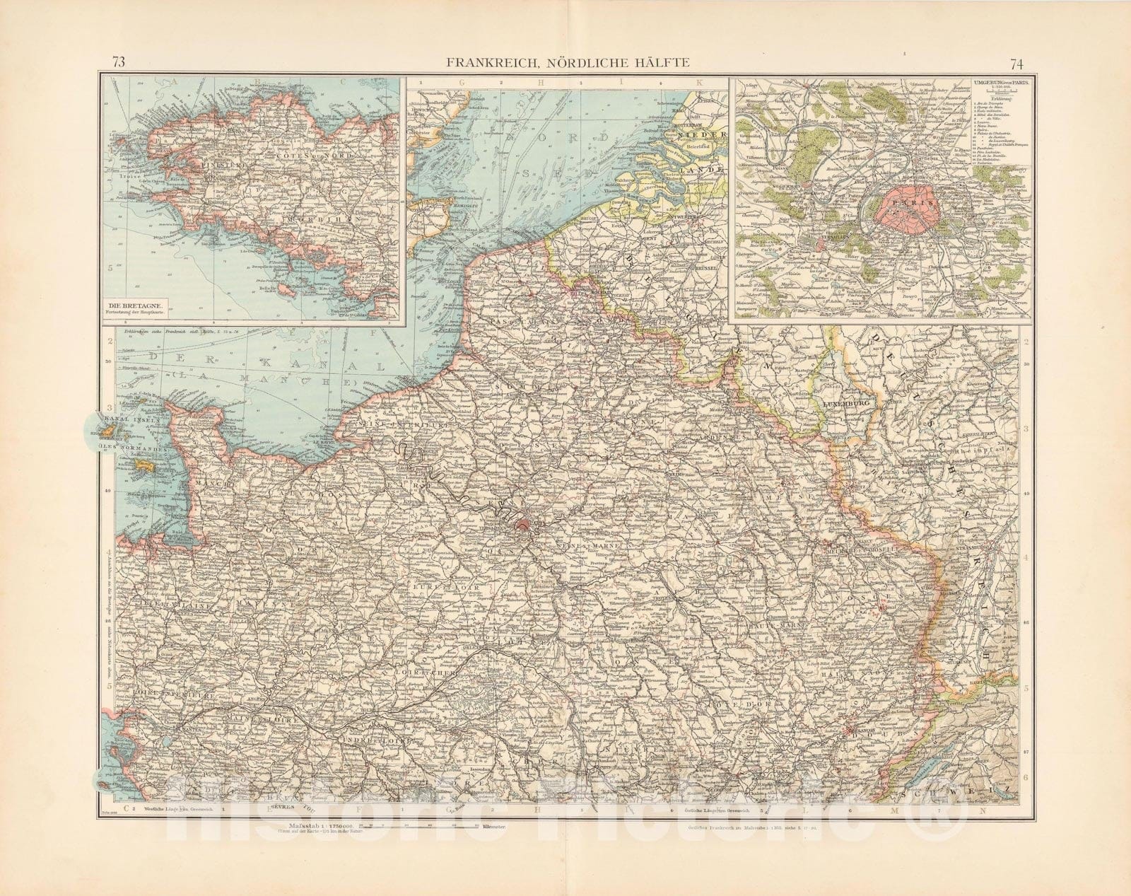 • .Historic Map : France 1899 , Andrees Allgemeiner Handatlas , v3, Vintage Wall Art