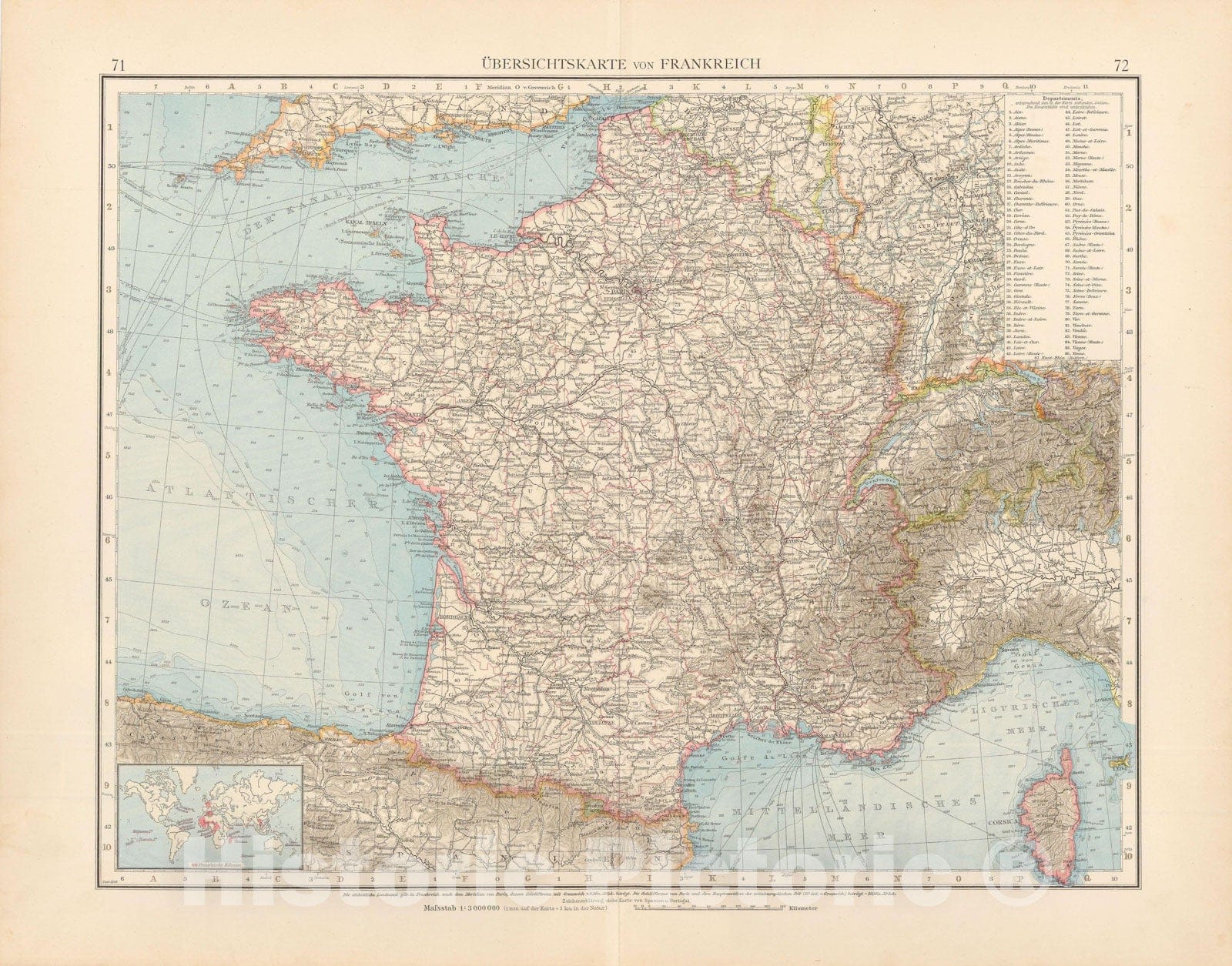 Historic Map : France 1899 , Andrees Allgemeiner Handatlas , v5, Vintage Wall Art
