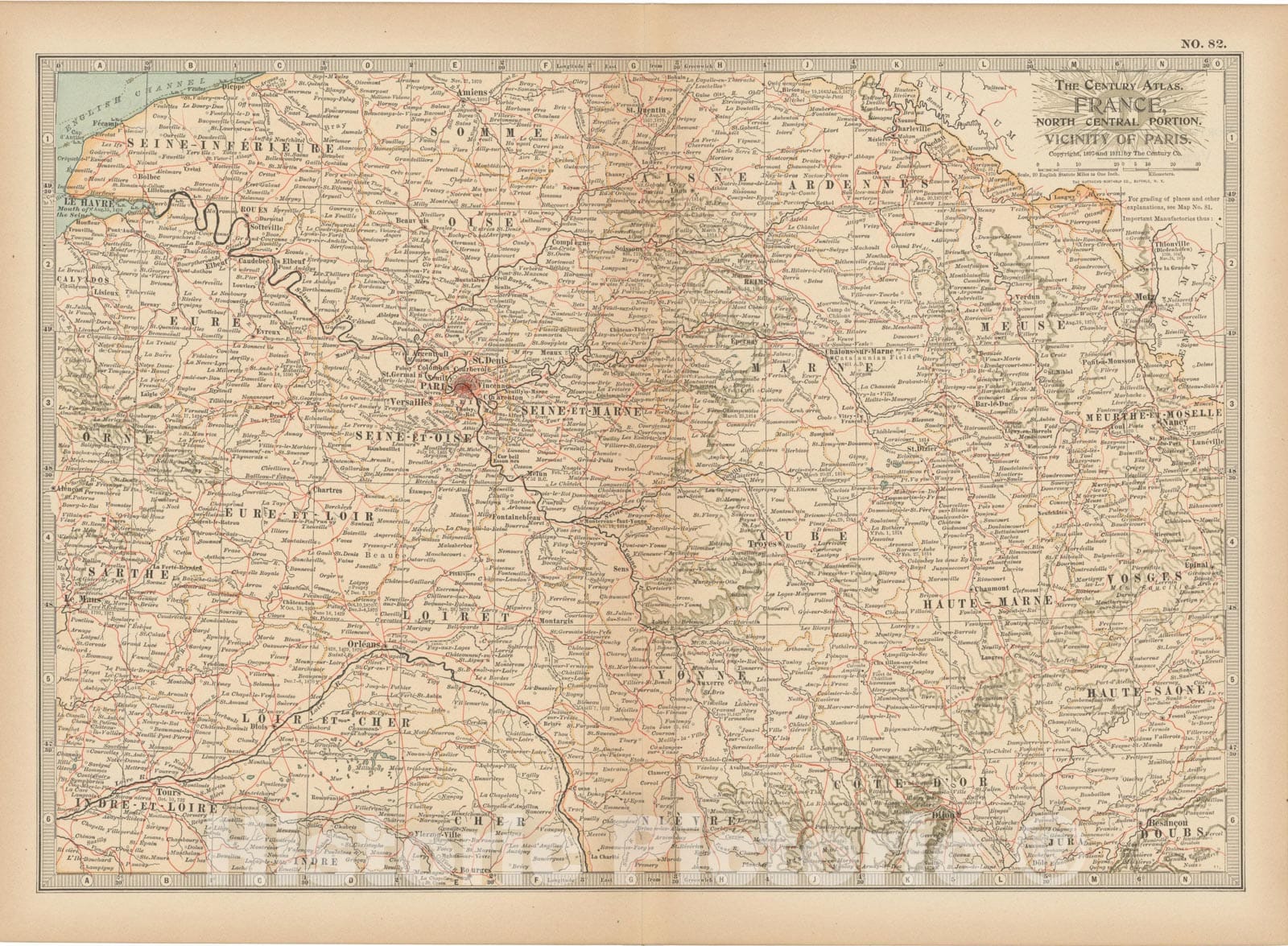 Historic Map : France 1914 , Century Atlas of the World, Vintage Wall Art
