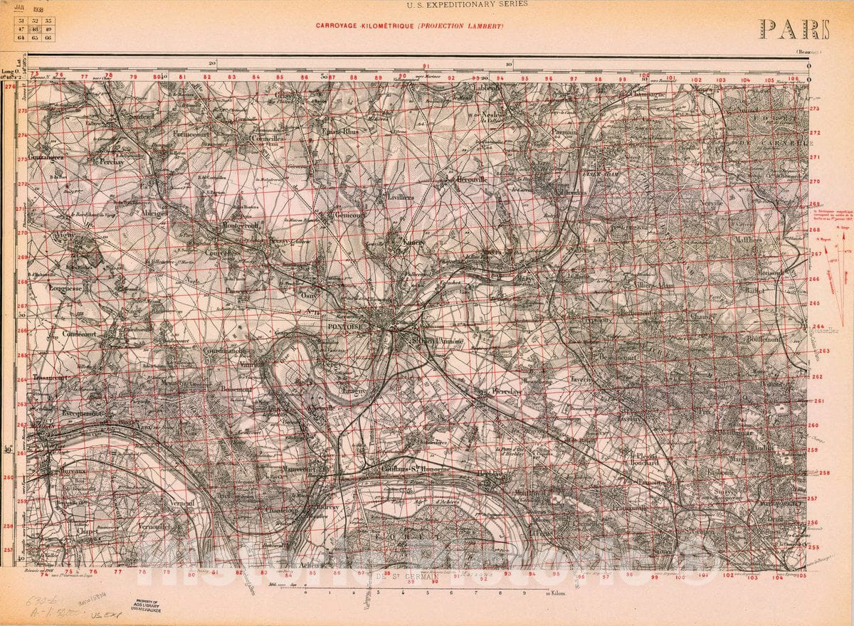 Map : France 1918- 123, [Topographic maps of France], Antique Vintage Reproduction