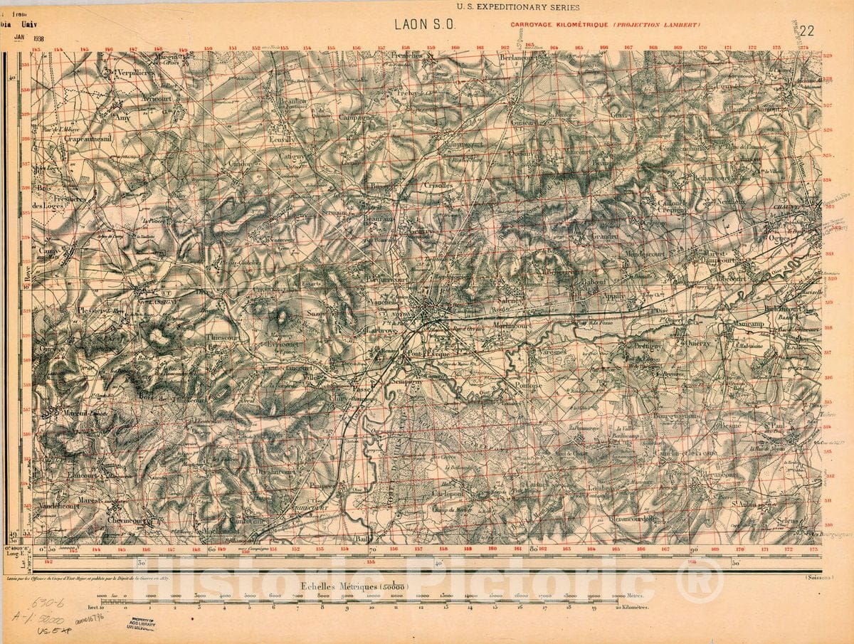 Map : France 1918- 130, [Topographic maps of France], Antique Vintage Reproduction