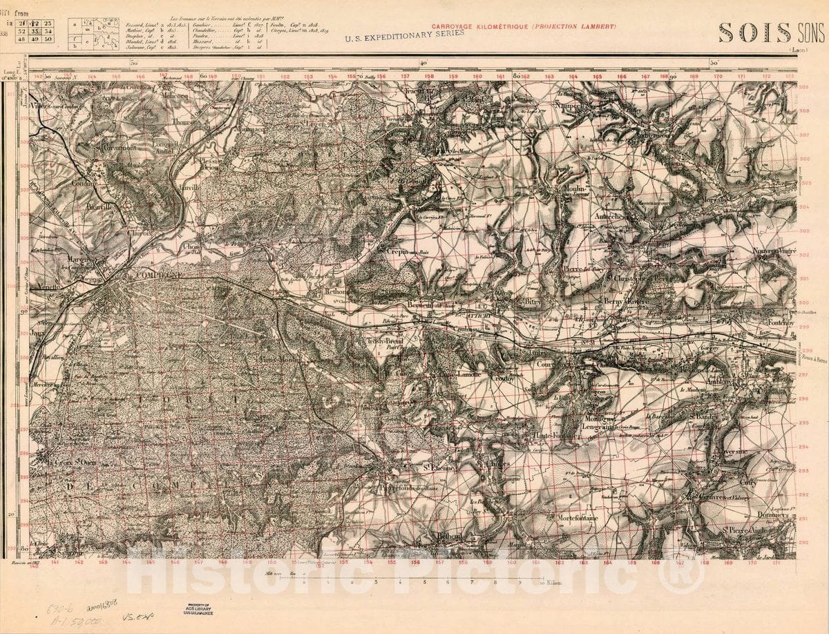 Map : France 1918- 167, [Topographic maps of France], Antique Vintage Reproduction