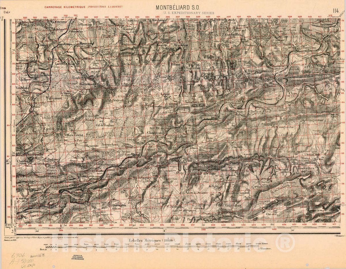Map : France 1918- 170, [Topographic maps of France], Antique Vintage Reproduction