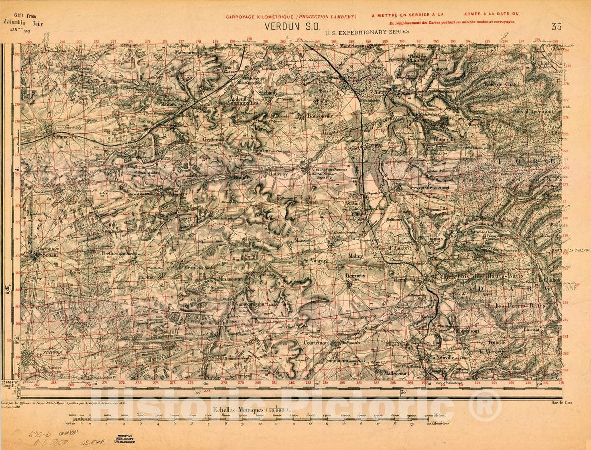 Map : France 1918- 182, [Topographic maps of France], Antique Vintage Reproduction