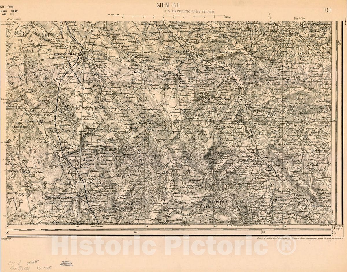 Map : France 1918- 187, [Topographic maps of France], Antique Vintage Reproduction