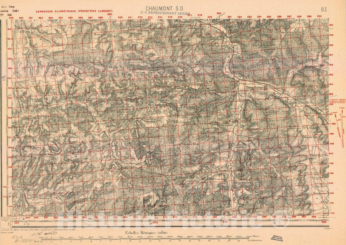 Map : France 1918- 191, [Topographic maps of France], Antique Vintage Reproduction