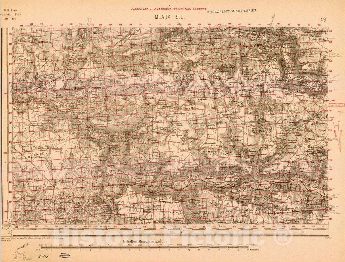 Map : France 1918- 58, [Topographic maps of France], Antique Vintage Reproduction