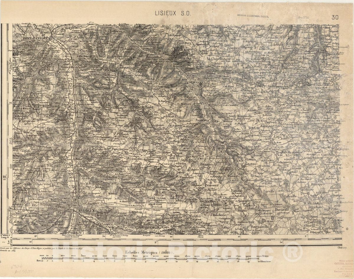 • Map : Lisieux S.O., France , [Topographic maps of France], Antique Vintage Reproduction