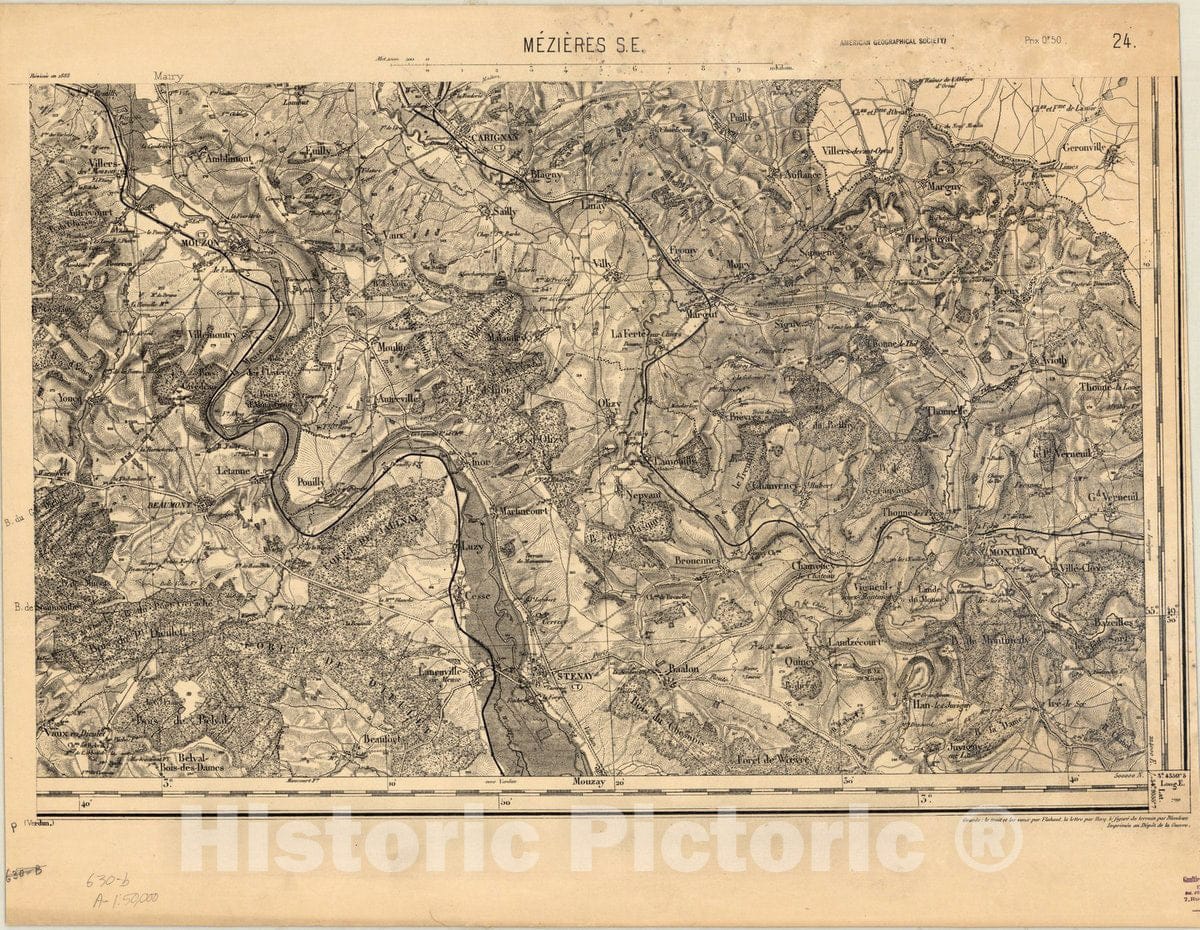 Map : Mezieres S.E., France , [Topographic maps of France], Antique Vintage Reproduction