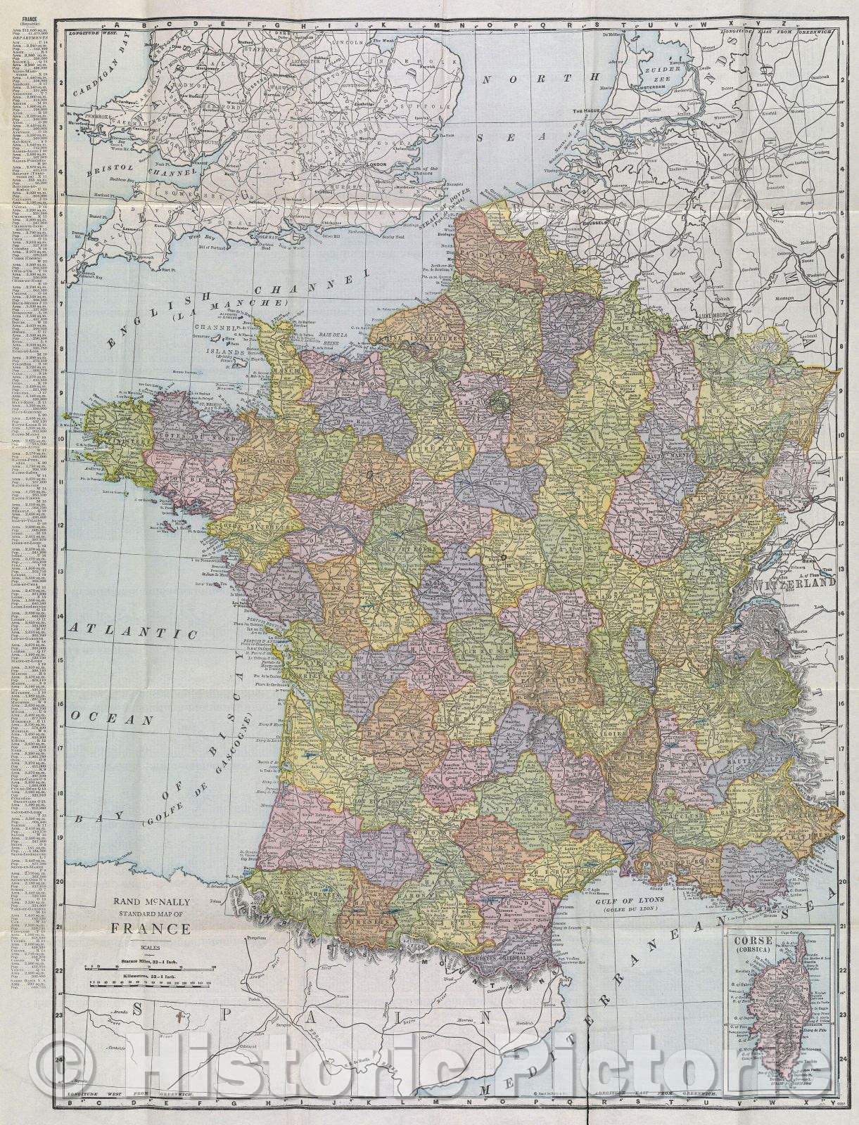 Historic Map : Rand McNally Standard Map of France, 1928 , Vintage Wall Art