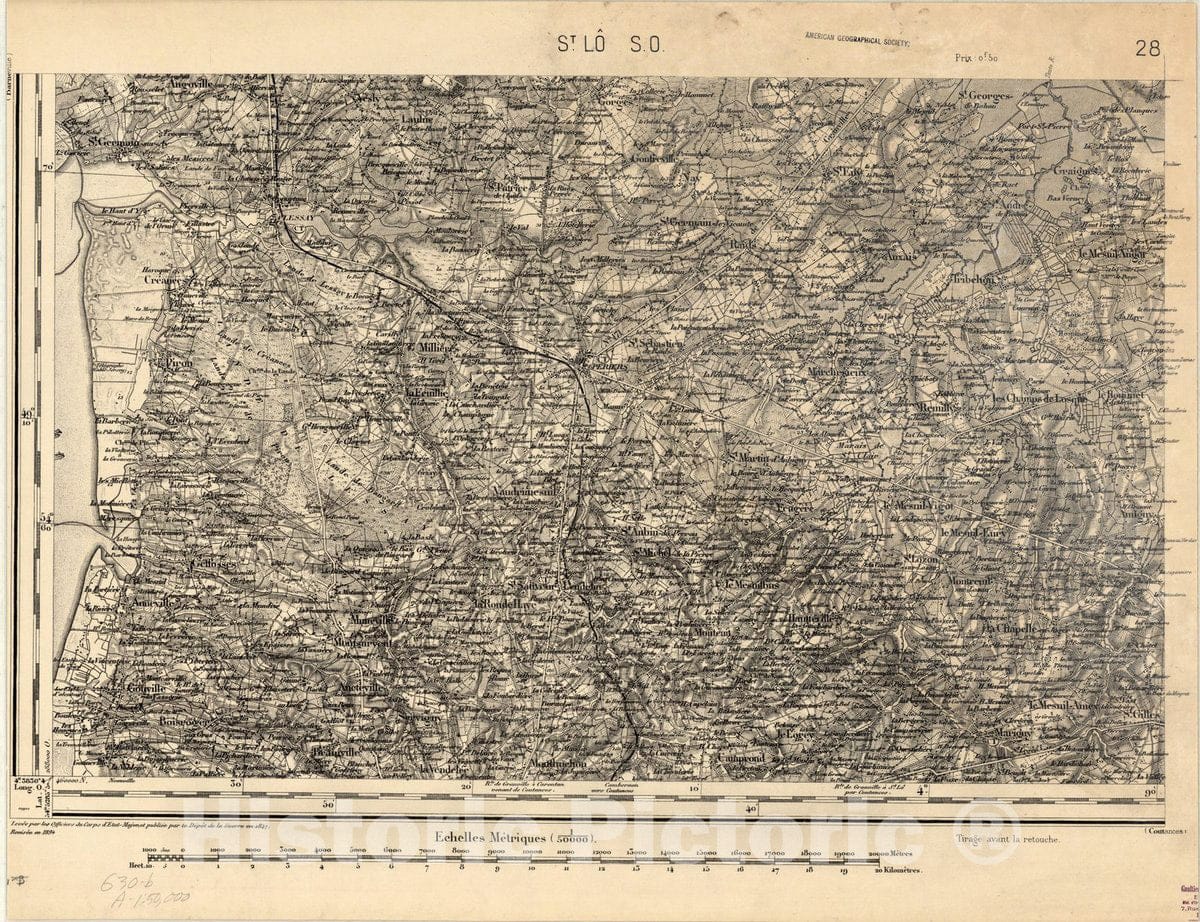 Map : St. Lo. S.O. , [Topographic maps of France], Antique Vintage Reproduction