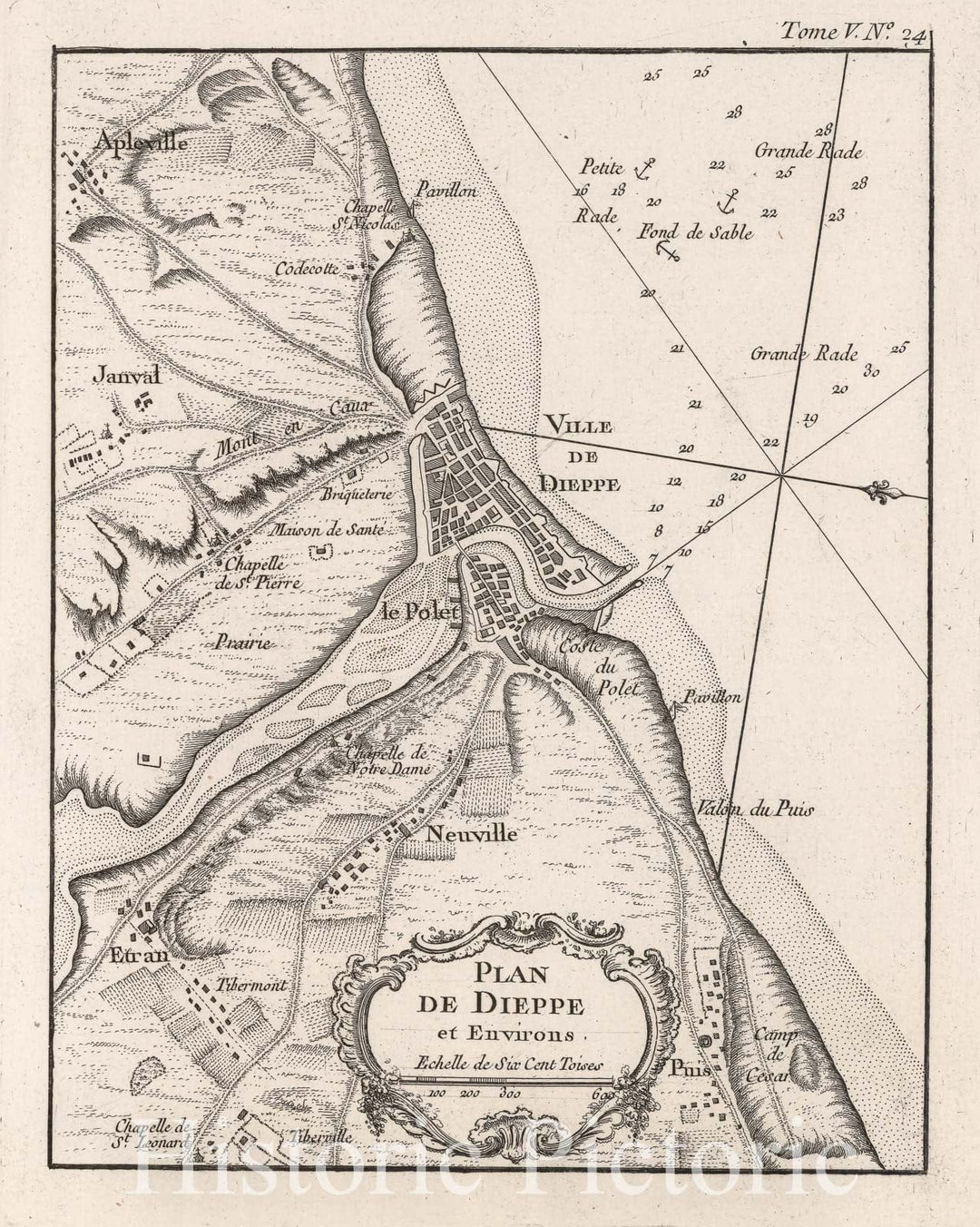 Historic Map : France , Dieppe France, 1764 Plan de Dieppe et environs. , Vintage Wall Art
