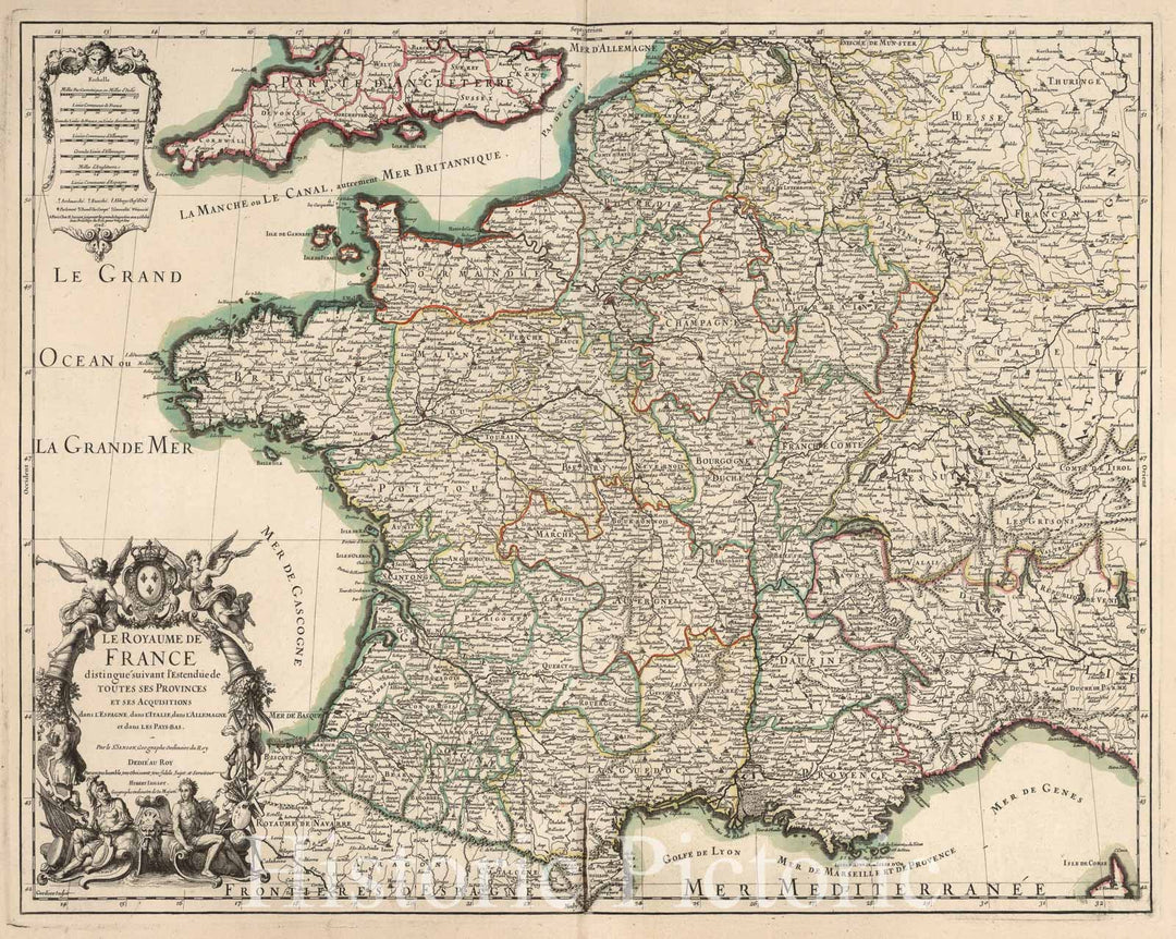 Historic Map : France, 1706 Le Royaume de France. , Vintage Wall Art