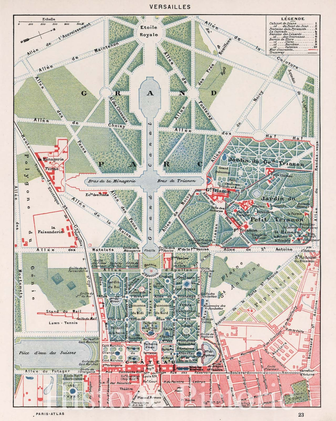 Historic Map : Versailles , France Versailles, 1900 City Atlas , Vintage Wall Art