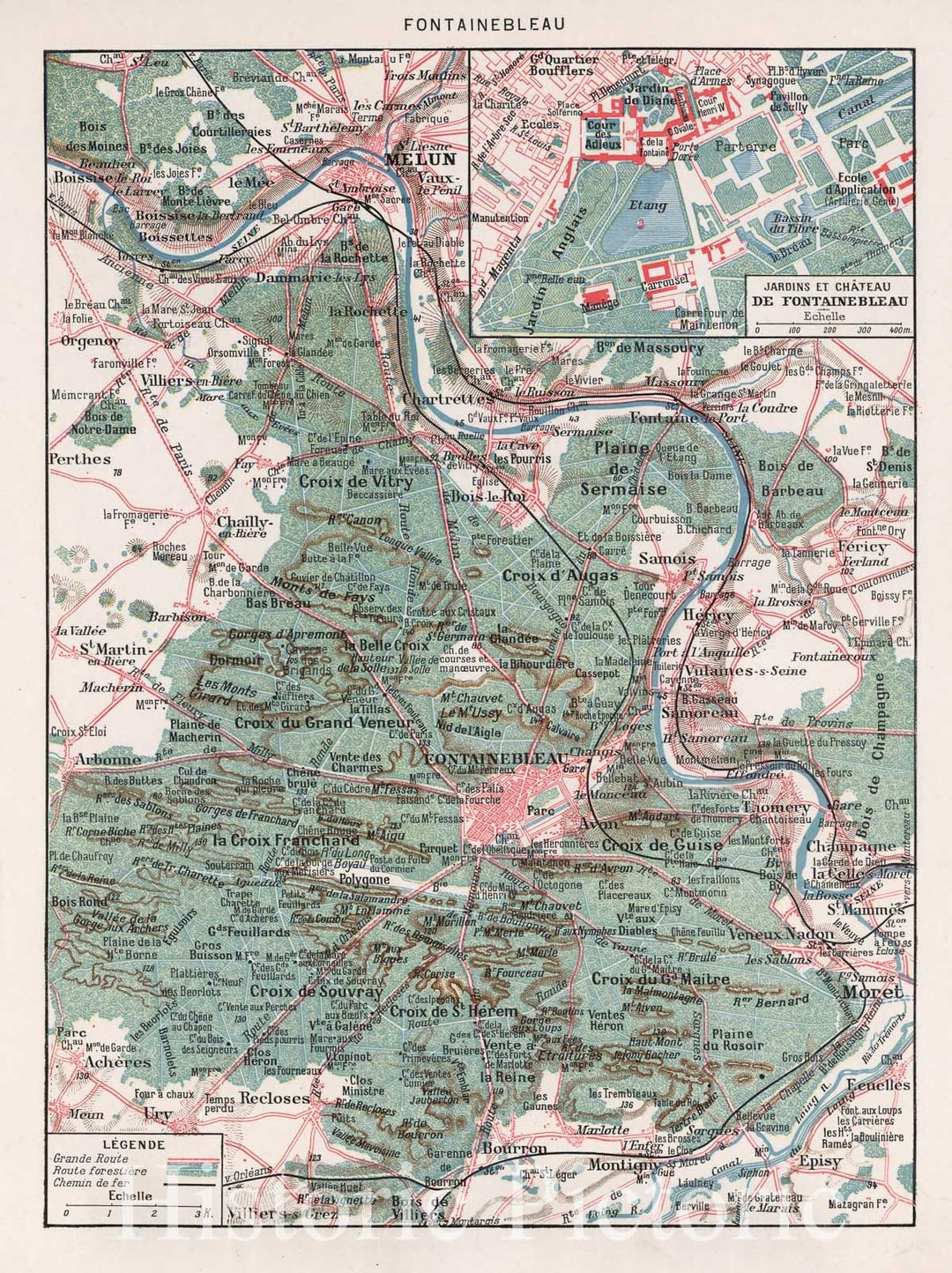 Historic Map : Fontainebleau , France City Atlas Map, Fontainebleau. 1900 , Vintage Wall Art