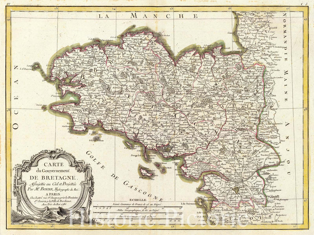 Historic Map : Bonne Map of Brittany, France, 1771, Vintage Wall Art