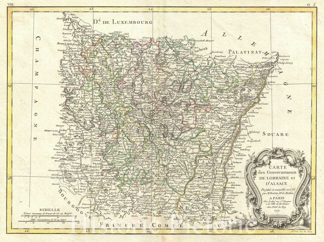 Historic Map : Bonne Map of Alsace and Lorraine, France, 1771, Vintage Wall Art