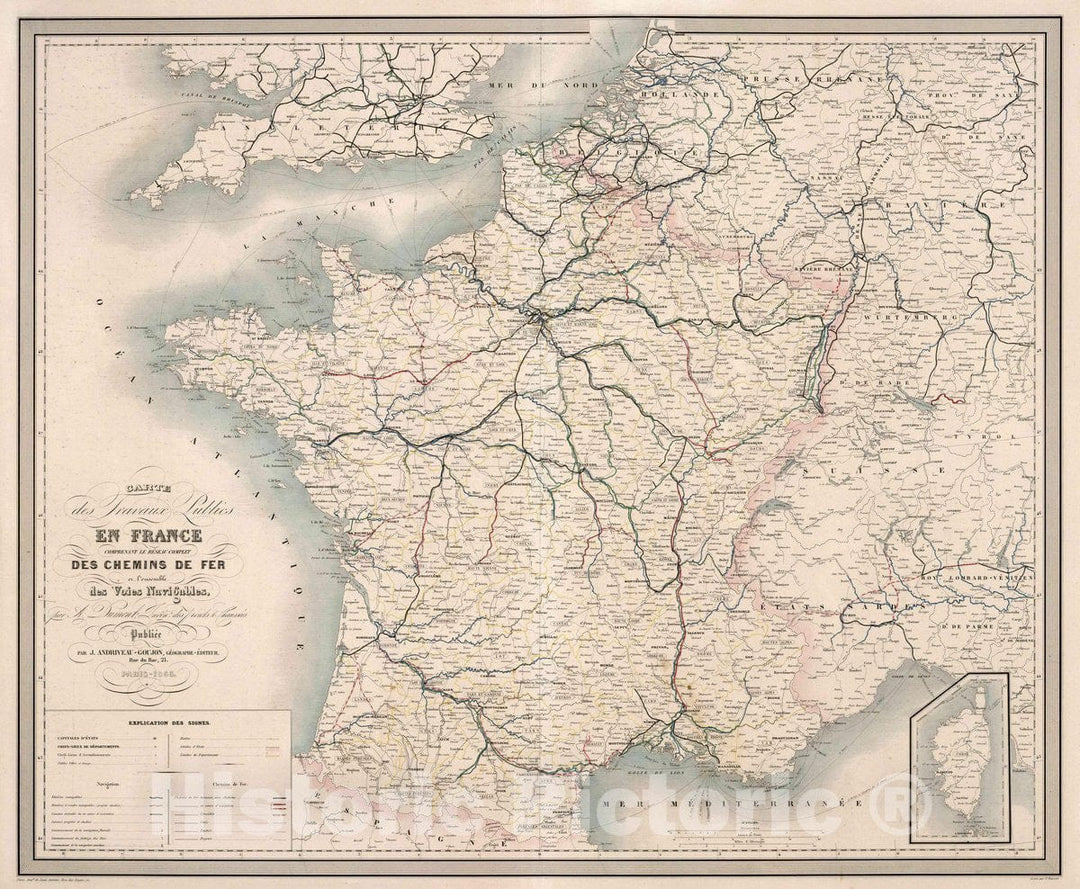 Historic Map : Carte des Travaux Publics en France des Chemins de Fer des Voies Navigables, 1853 Atlas - Vintage Wall Art