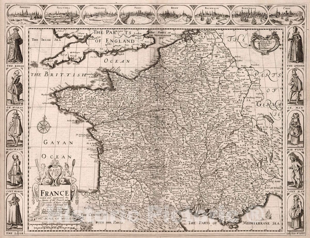 Historic Map : France, 1676 Atlas - Vintage Wall Art