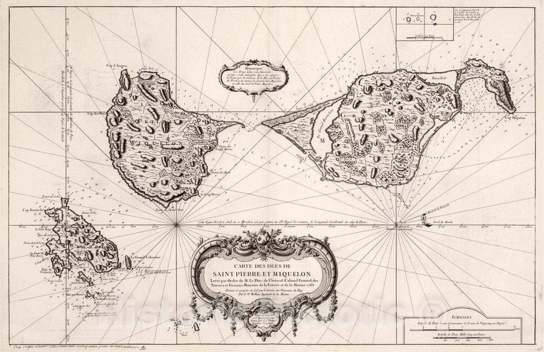 Historic Map : Newfoundland, Saint Pierre , France Carte des les Saint Pierre et Miquelon. , Vintage Wall Art