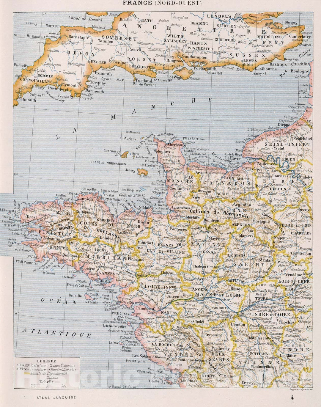 Historic Map : France,France (Nord-Ouest). 1900 , Vintage Wall Art