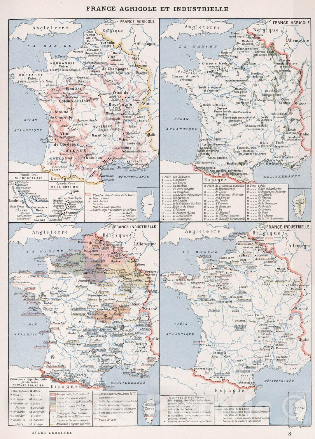 Historic Map : France,France Agricole et Industrielle. 1900 , Vintage Wall Art