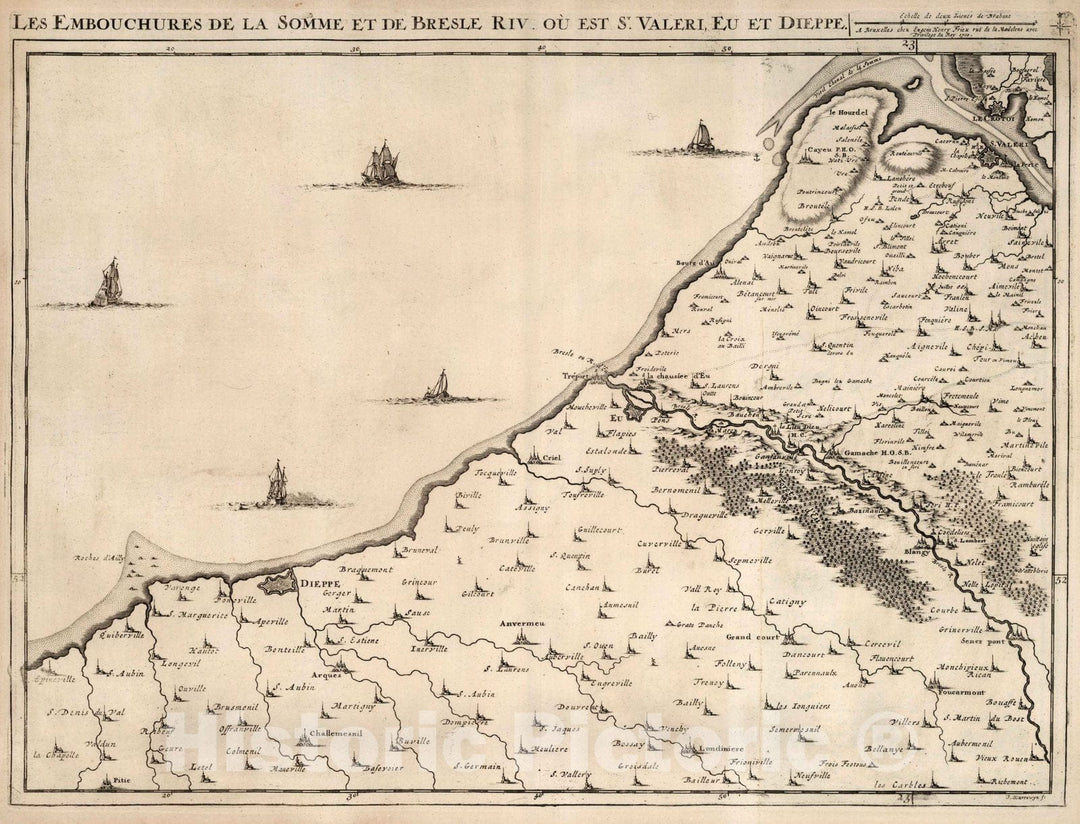 Historic Map : France,19. Les Embouchure de la Somme et de la Bresle Riviere ou est St. Valeri, Eu et Dieppe. 1710. 1710 , Vintage Wall Art
