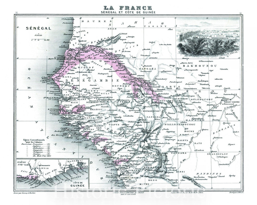 Historic Map : 1875 La France: Senegal et Cote de Guinee : Vintage Wall Art