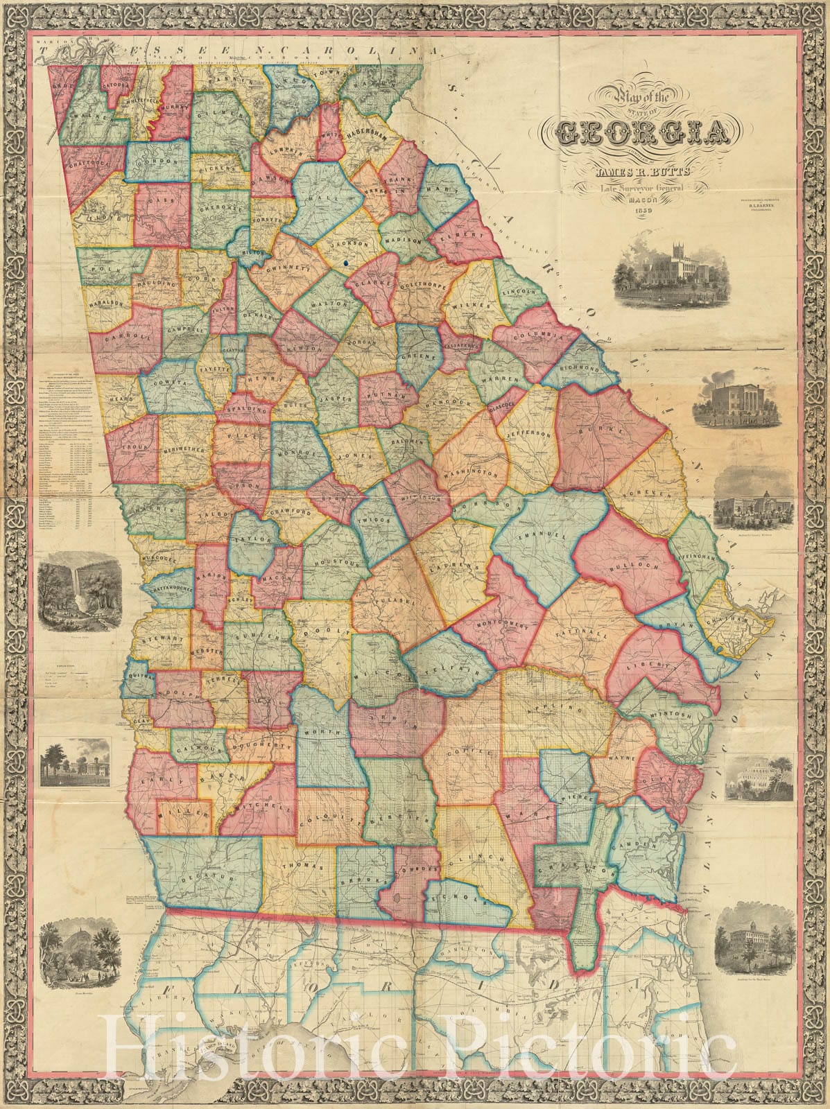 Historical Map, 1863 Northern Georgia with portions of Adjacent States, Vintage Wall Art