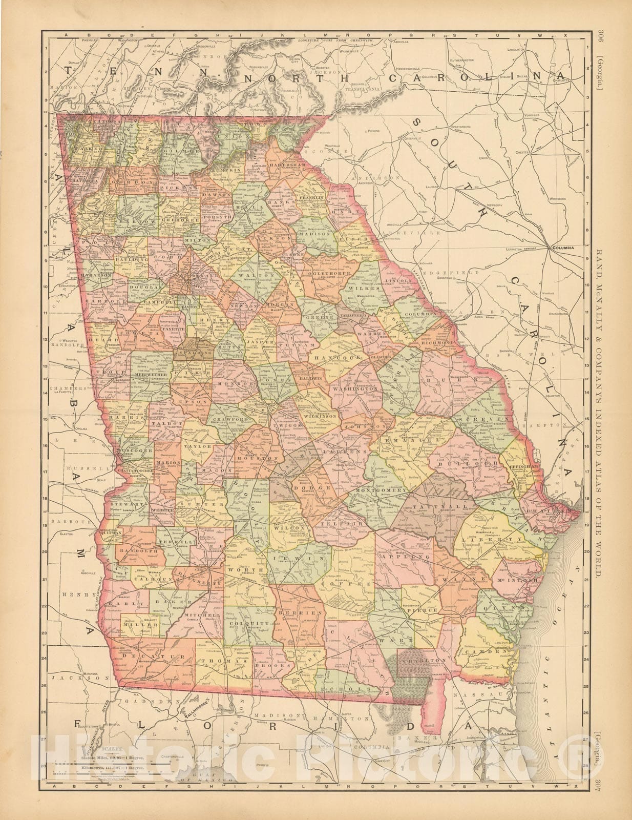 Historic Map : United States Maps, Georgia 1894 , Vintage Wall Art