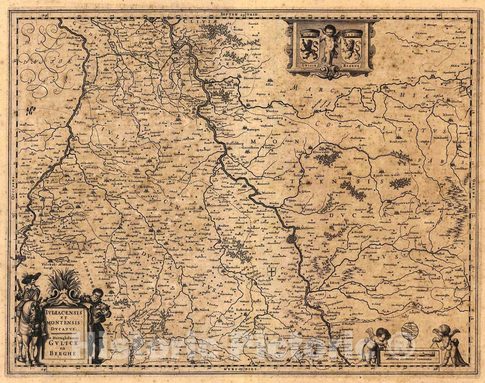 • .Historic Map : 1645 Iuliacensis et Montensis Ducatus [Duchy of Julich and Berg, Germany] : Vintage Wall Art