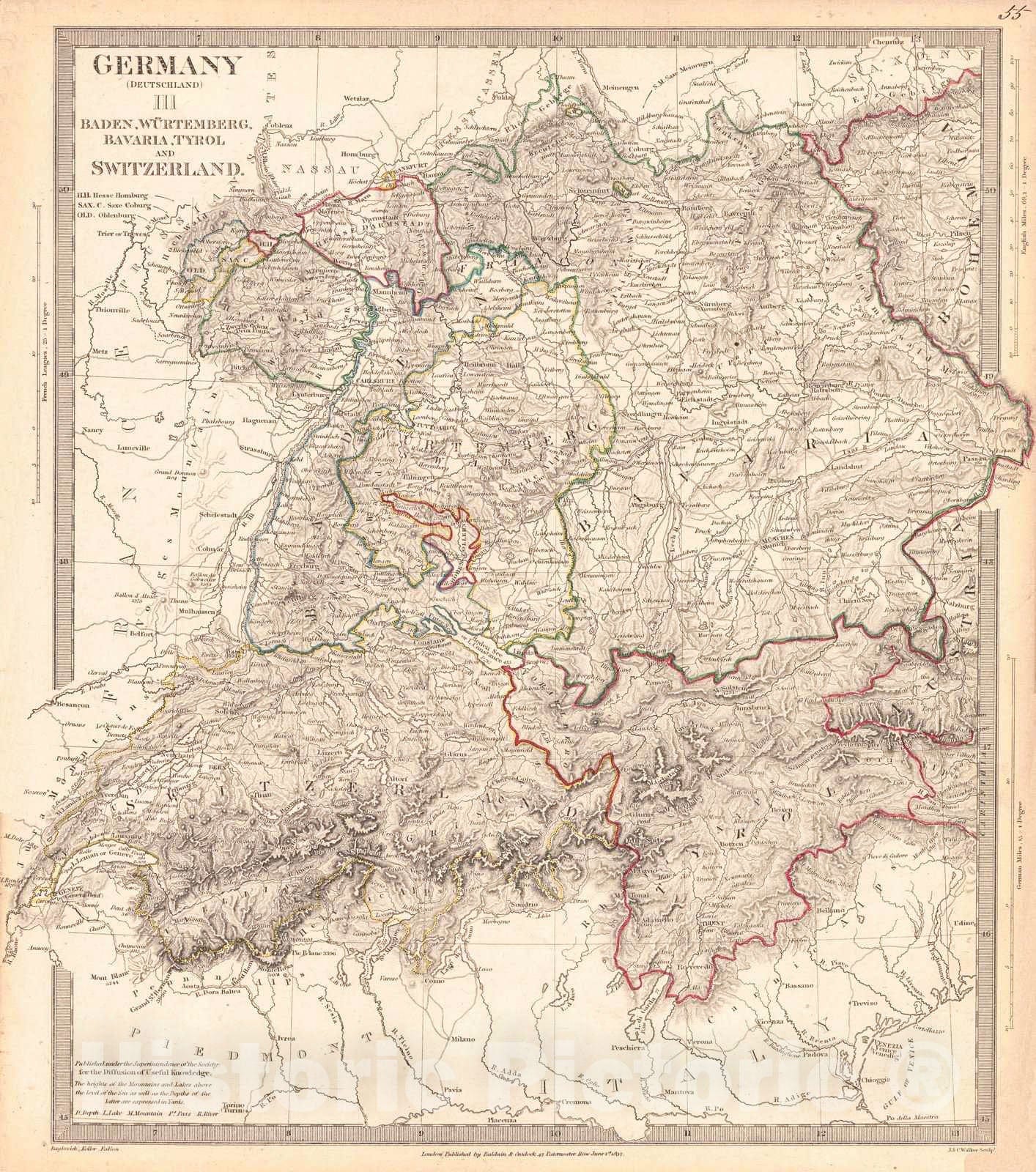 Vintage Map | 1832 Germany III: Baden, Wurtenberg, Bavaria, Tyrol and Swizterland | Society for the Diffusion of Useful Knowledge