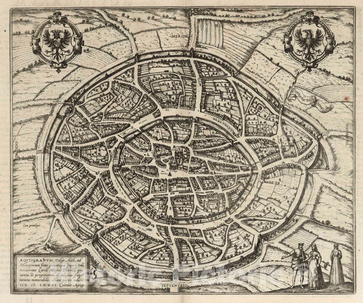 Historic Map : Aachen , Germany, Vol I (12) Aquisgranum, vulgo AICH, 1577 Atlas , Vintage Wall Art